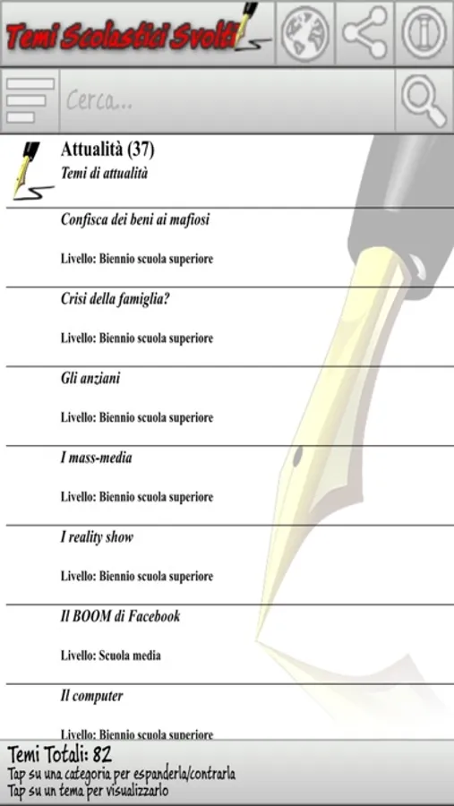 Performed School Themes is a collection with a lot of italian educational issues on various topics in ebook format useful to get prepared to the classworks or to the school examination.