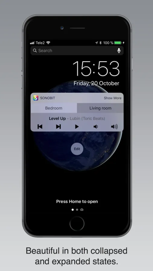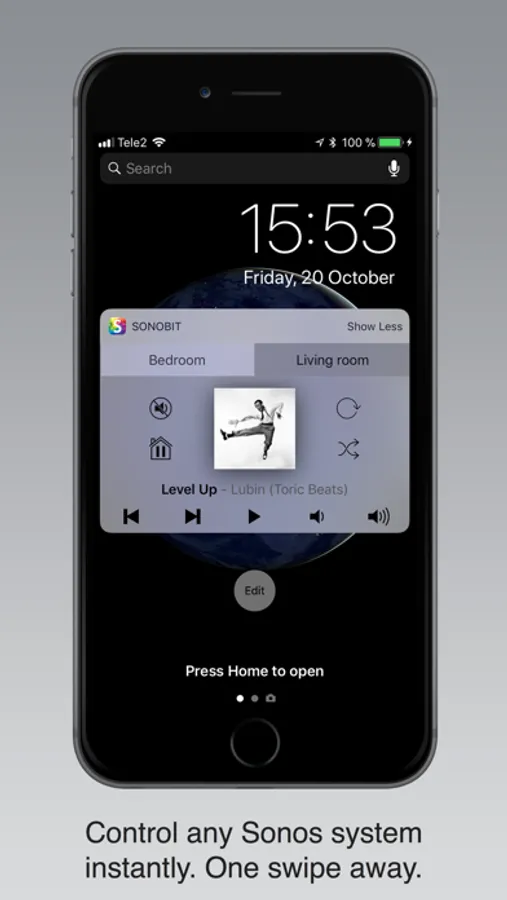 Sonobit is the most feature-packed remote widget for Sonos on the market. You don’t even have to unlock your iPhone/iPad to access advanced features like group control and ”Pause All”. Just swipe to the right on the Home screen or the Lock screen of your iPhone/iPad to access the widget.