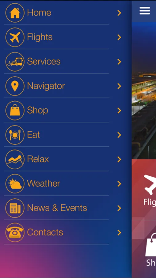 · Browse through Shop, Eat, Relax and Services tabs to get information about the various facilities offered at Delhi Airport