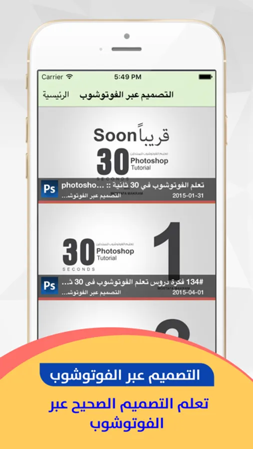 تطبيق التصميم عبر الفوتوشوب لمشاهدة اروع الفيديوهات في حلقات التصميم عبر الفوتوشوب وبجودة عالية وتستطيع من خلال التطبيق تغيير الفيديو ما بين الحلقات وايضا التحكم بالصوت وتكبير وتصغير حجم شاشة الفيديو بكل سهولة .