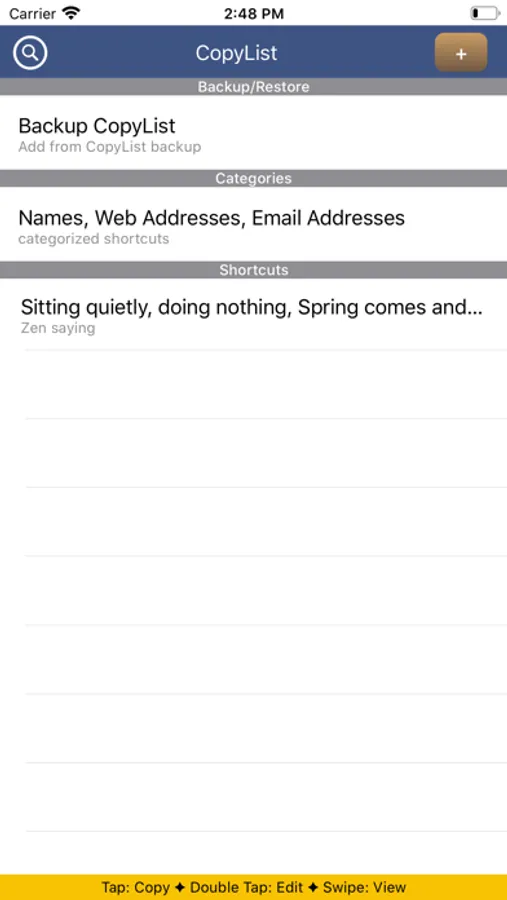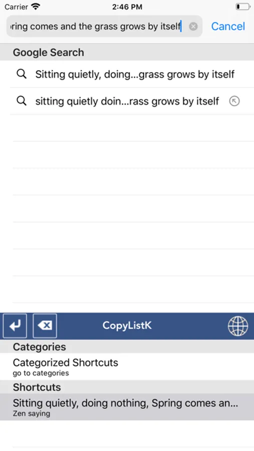 If you don't like typing a lot on your iPhone, iPod Touch or iPad, and wish you had a list where you can copy and paste text easily and quickly, enter CopyListK!