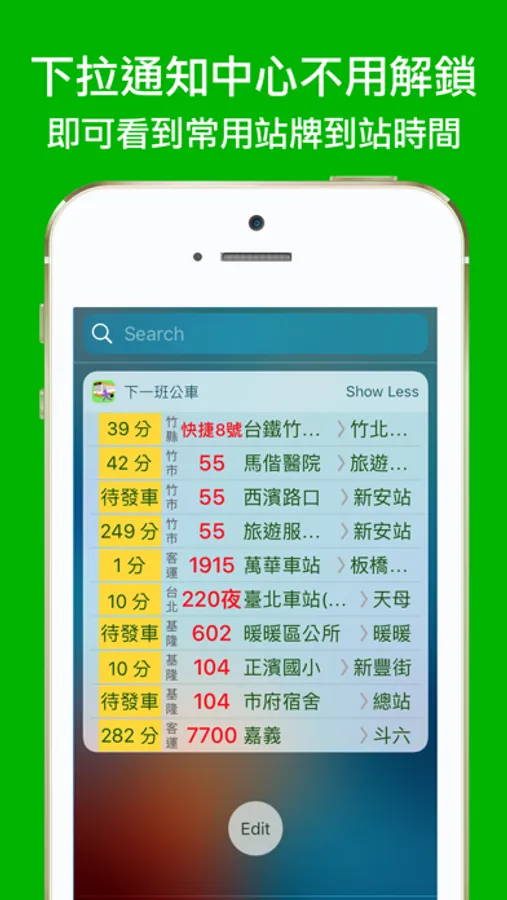 - 支援 Widget,拉下通知中心不用解鎖,即可看到常用站牌到站時間