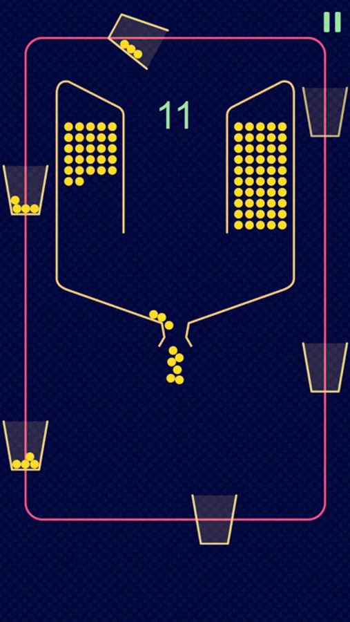 The core gameplay is very simple. What you should do is to tap at the right time when the cups is at right position and release the balls. Try your best to make the balls fall into the cup. If a cup fails to catch any ball, you will lose it. When you lose all the cups or balls, the game is over.