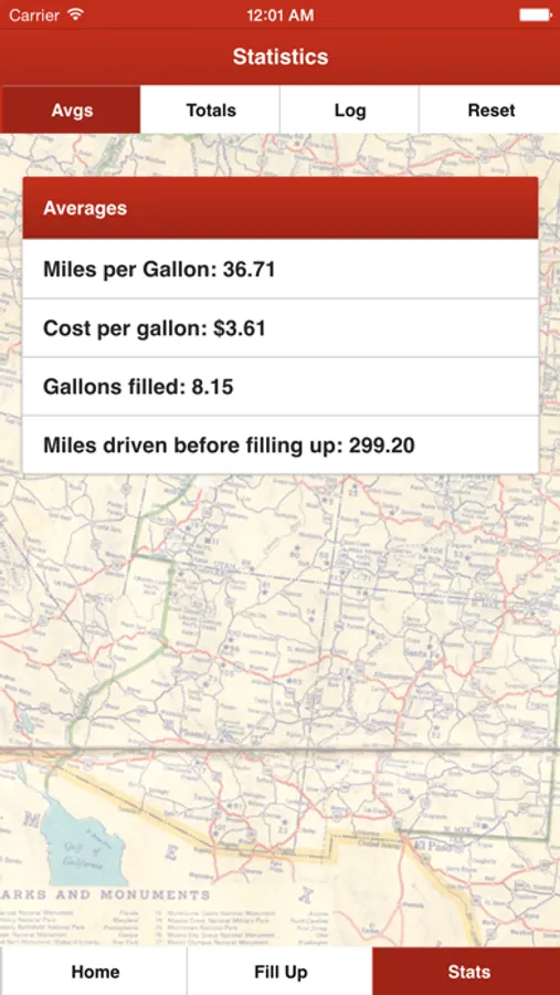 On the Road is your go to app for tracking a ton of different car/driving statistics. Use this app to see your average miles per gallon, cost per gallon, miles driven before filling up, your total miles driven, and even a history log so you can view all of your prior fills to see what day you specifically had the best gas mileage or the cheapest gas. Perfect for all different situations from road trippers to people just curious about their mpg!