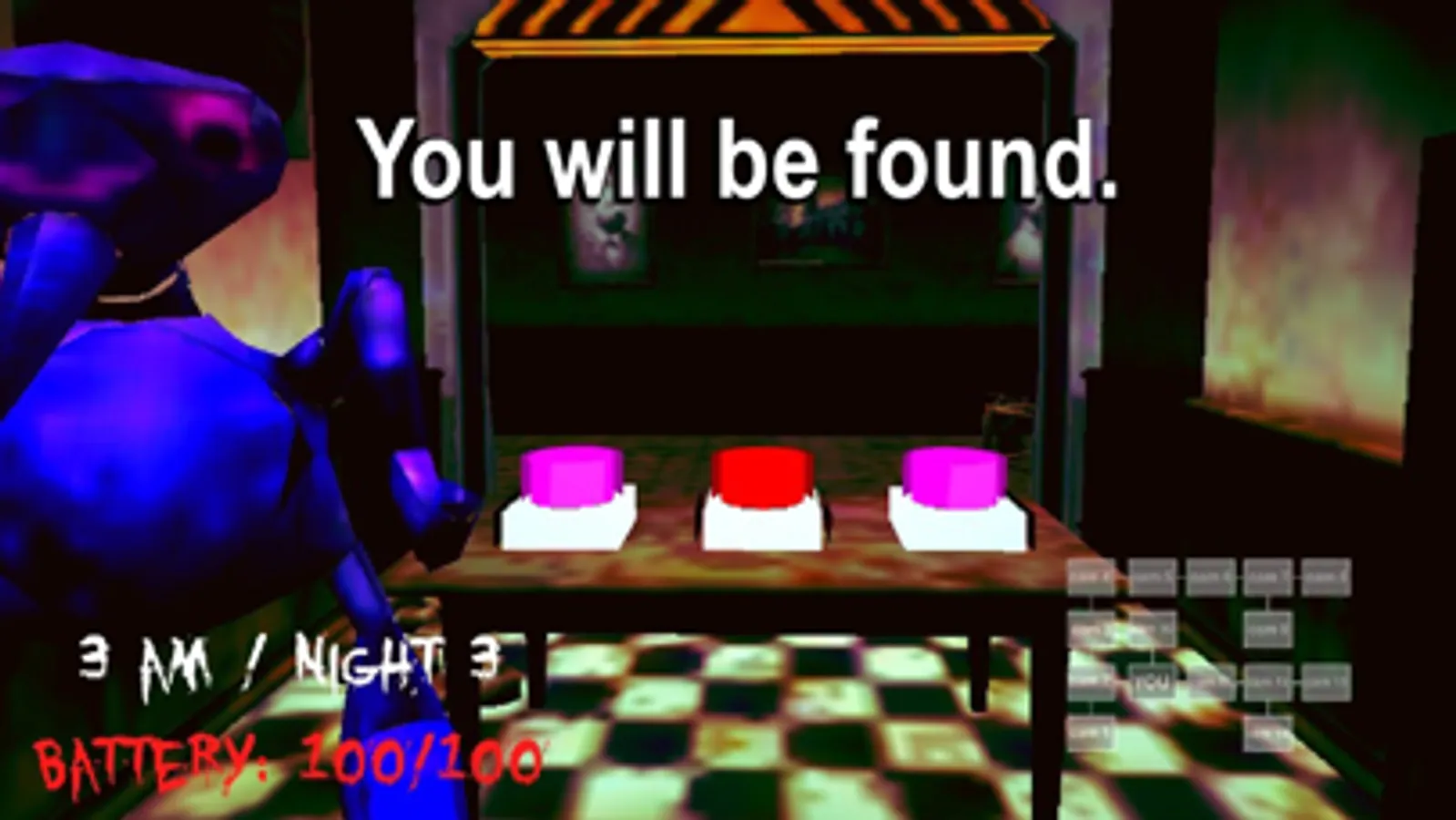 From your small office you must watch the security cameras carefully. You have a very limited amount of electricity that you're allowed to use per night. That means when you run out of power for the night- no more security doors and no more lights! If something isn't right- namely if the robots are moving around, you must find them on the monitors and protect yourself!