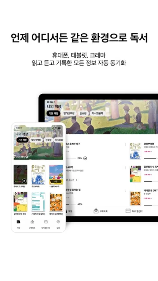 - 모든 단말기에서 동일한 책장과 독서 상태를 유지합니다.
