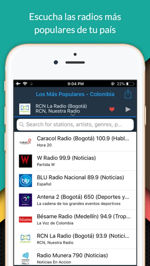 Keep in touch with Colombia, its culture and all the joy of its people through its popular radio stations.