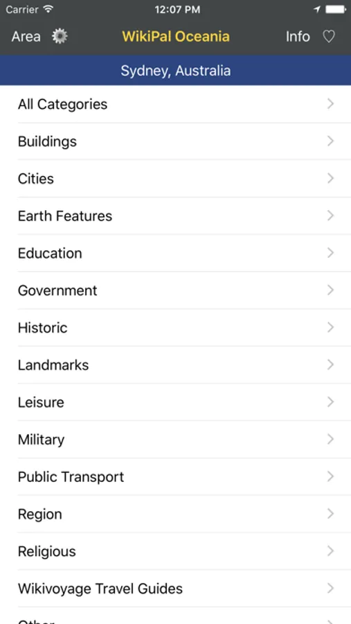 The WikiPal Oceania app has three parts. The first part is a regular iOS application, the second part is a message app, and the third part is a watch app. The three parts are isolated from one another. For example setting an area reference location in the iOS application part does not affect the area selection in the message app part or the watch app part and vice versa.