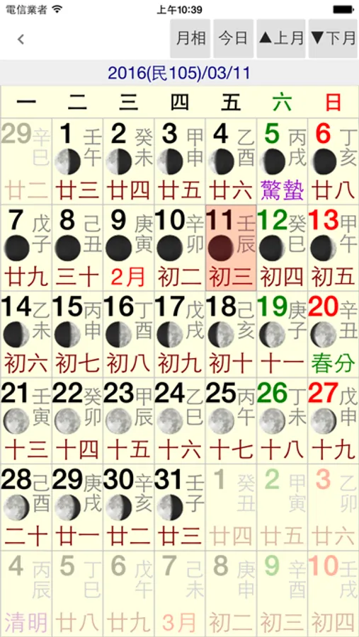 ● 提供顯示一整個月的「月相圖」。