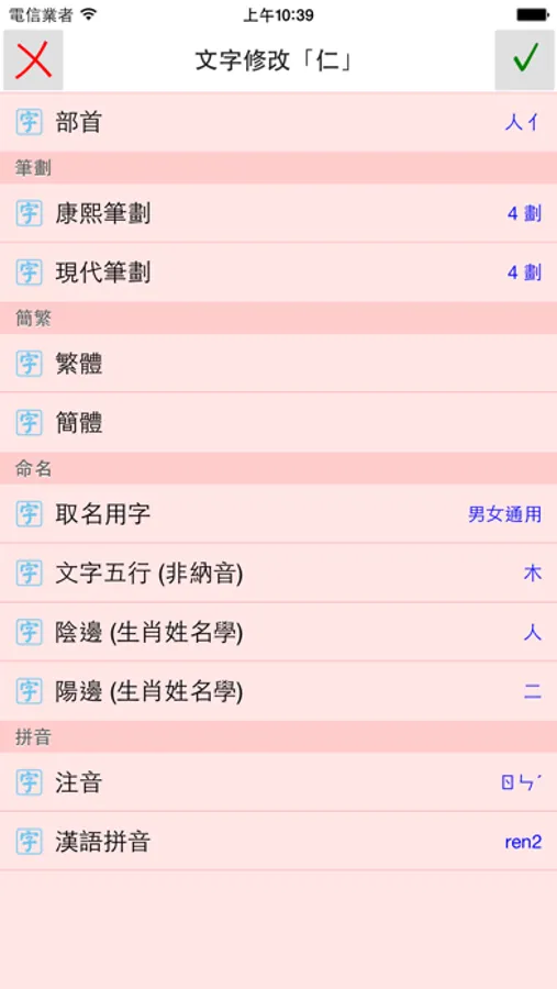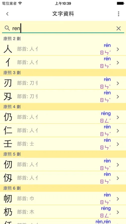● 提供中文字資料搜尋功能,可用「中文漢字」、「漢語拼音」、「注音符號」來搜尋文字。