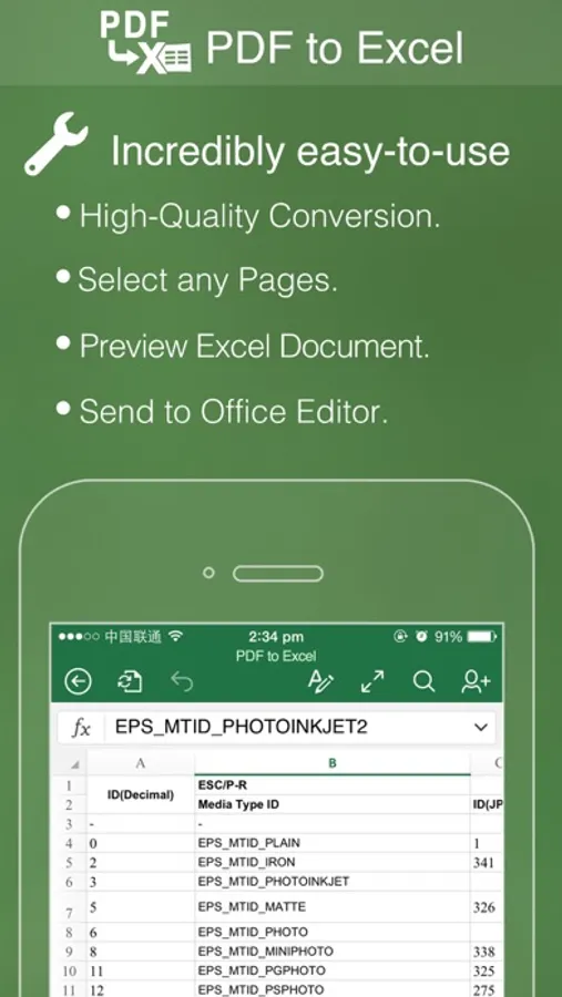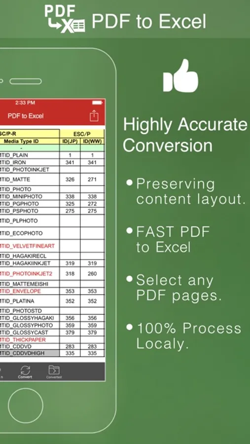 Flyingbee PDF to Excel Converter convert PDF to Excel documents quickly and efficiently. It convert PDF file back to editable and modifiable Microsoft Office Excel spreadsheets with well-preserved original texts, layouts, font style, tables. And you can easily edit, reuse and calculate the data in output excel(.xlsx) documents. It support opened in popular mobile office editor app(such as: Microsoft Excel iOS, Polaris Office, WPS or QuickOffice).