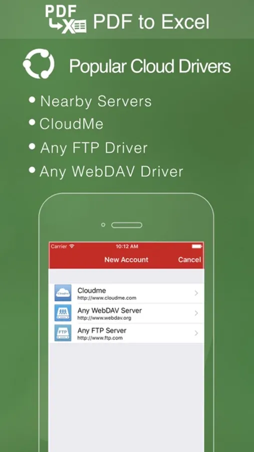 • Connect to online cloud storage support, include any FTP or WebDAV Server.