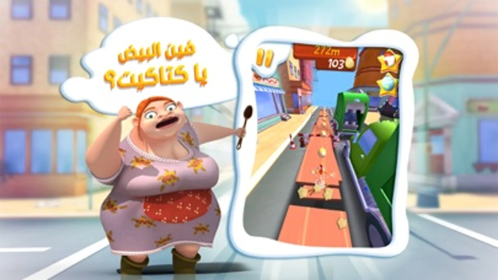 إبدأ المغامرة مع ديكو واصدقائه ، الدجاج الهارب من أبلة زكية الطباخة التي لن ترتاح قبل أن تمسك بك!