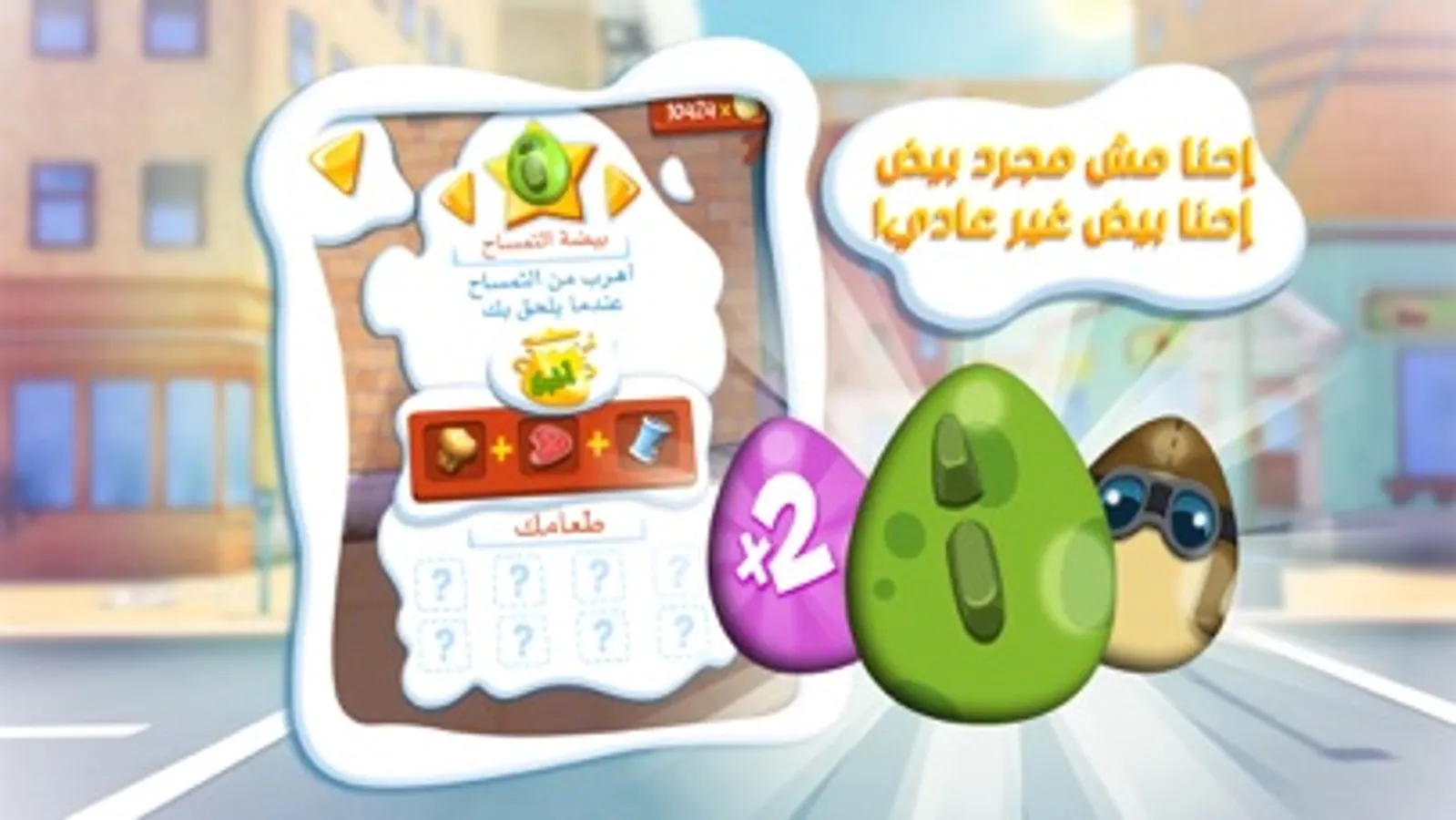 أركض مع ديكو وميمي والجدة فرخة في أنحاء المدينة، واجمع المكونات العجيبة، لتصنع منها البيض السحري! ولكن إحترس من أبلة زكية ! أهرب منها، و حلق بعيداً، أو إختبئ تحت الأرض، وإذا لم ينفع شيء معها إرمها بالبيض الفاسد! كن حذراً من التماسيح أيضاً فالجميع يسعى وراء البيض الذي معك!
