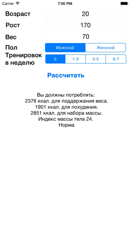 Приложение поможет Вам рассчитать свой индекс массы тела,