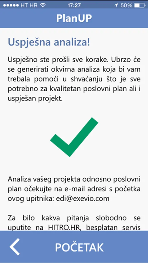 PlanUp je aplikacija za izradu poslovnog plana, koja u 19 jednostavnih koraka poslovnog plana, omogućava okvirnu analizu poslovanja imaginarne ili stvarne tvrtke. PlanUp ima prvenstveno edukativnu funkciju čiji je cilj educirati korisnika o dijelovima poslovnog plana i dati uvid uspješnost poslovanja tvrtke. Nakon što je korisnik prošao kroz svih 19 koraka, na mail adresu dolazi generirani poslovni plan na temelju podataka koje je ispunio.