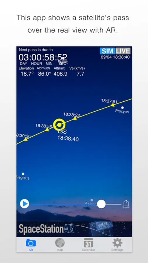 Most intuitive satellite tracker to see International Space Station(ISS), Starlink trains and others using AR, augmented reality technology.