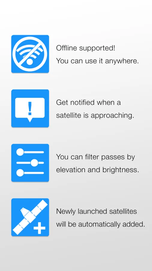Apple Watch app and "Today" widget are also available. They show simple lists of satellites' passes.