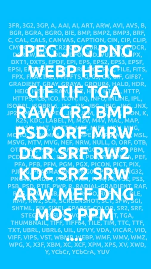 3FR, 3G2, 3GP, A, AAI, AI, ART, ARW, AVI, AVS, B, BGR, BGRA, BGRO, BIE, BMP, BMP2, BMP3, BRF, C, CAL, CALS, CANVAS, CAPTION, CIN, CIP, CLIP, CMYK, CMYKA, CR2, CRW, CUR, CUT, DCM, DCR, DCRAW, DCX, DDS, DFONT, DJVU, DNG, DPX, DXT1, DXT5, EPDF, EPI, EPS, EPS2, EPS3, EPSF, EPSI, EPT, EPT2, EPT3, ERF, EXR, FAX, FILE, FITS, FPX, FRACTAL, FTP, FTS, G, G3, G4, GIF, GIF87, GRADIENT, GRAY, GRAYA, GROUP4, HALD, HDR, HEIC, HISTOGRAM, HRZ, ICB, ICO, ICON, IIQ, INFO, INLINE, IPL, ISOBRL, ISOBRL6, J2C, J2K, JBG, JBIG, JNG, JNX, JP2, JPC, JPE, JPEG, JPG, JPM, JPS, JPT, JSON, K, K25, KDC, LABEL, M, M2V, M4V, MAC, MAP, MASK, MAT, MATTE, MEF, MIFF, MKV, MNG, MONO, MPC, MPEG, MPG, MRW, MSL, MSVG, MTV, MVG, NEF, NRW, NULL, O, ORF, OTB, OTF, PAL, PALM, PAM, PANGO, PATTERN, PBM, PCD, PCDS, PCL, PCT, PCX, PDB, PEF, PFA, PFB, PFM, PGM, PGX, PICON, PICT, PIX, PJPEG, PLASMA, PNG, PNG00, PNG24, PNG32, PNG48, PNG64, PNG8, PNM, PPM, PS, PS2, PS3, PSB, PSD, PTIF, PWP, R, RADIAL-GRADIENT, RAF, RAS, RAW, RGB, RGBA, RGBO, RGF, RLA, RLE, RMF, RW2, SCR, SCREENSHOT, SCT, SFW, SGI, SHTML, SIX, SIXEL, SPARSE-COLOR, SR2, SRF, STEGANO, SUN, SVG, SVGZ, TEXT, TGA, THUMBNAIL, TIFF, TIFF64, TILE, TIM, TTC, TTF, TXT, UBRL, UBRL6, UIL, UYVY, VDA, VICAR, VID, VIFF, VIPS, VST, WBMP, WEBP, WMF, WMV, WMZ, WPG, X, X3F, XBM, XC, XCF, XPM, XV, XWD, Y, YCbCr, YCbCrA, YUV, MDC