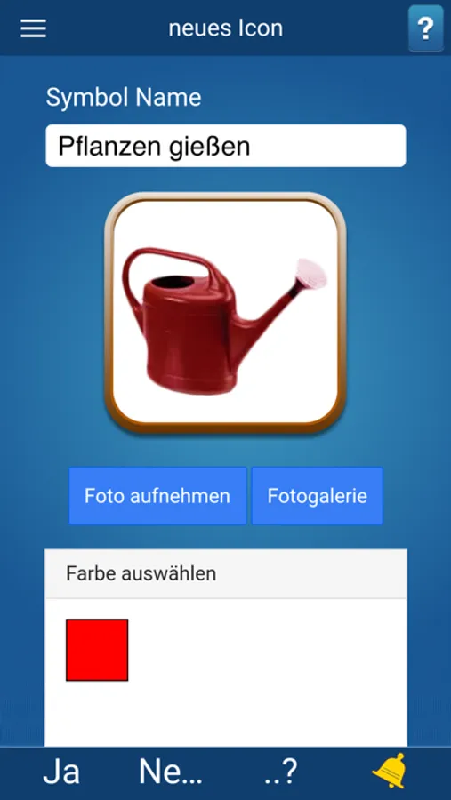 Die "Neues Symbol" Funktion ermöglicht Ihnen neue personalisierte Symbole mit Bildern und Sätzen einzufügen.