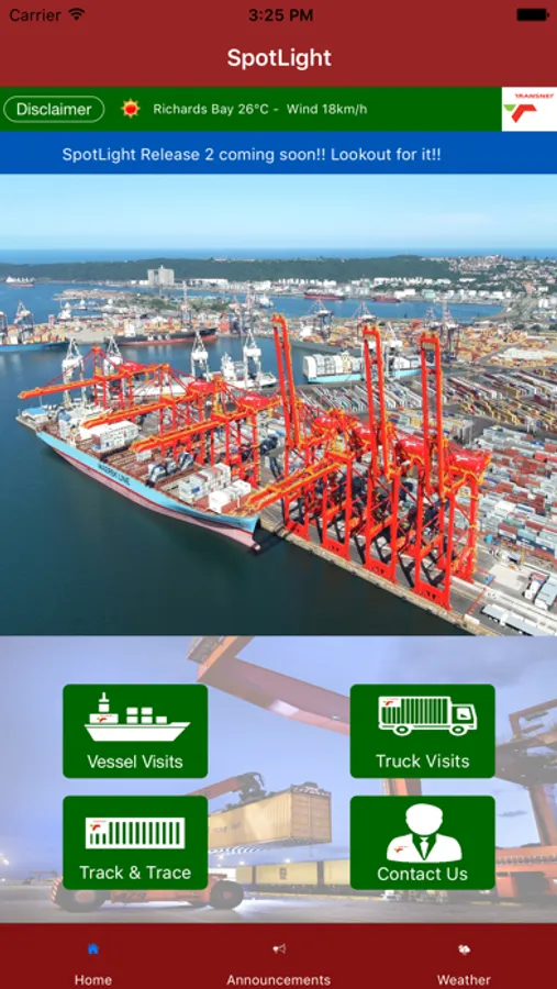 Announcements – Provide information on Terminal Operations, Traffic, Vessels and the status of Container releases.