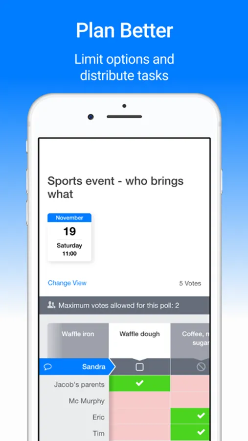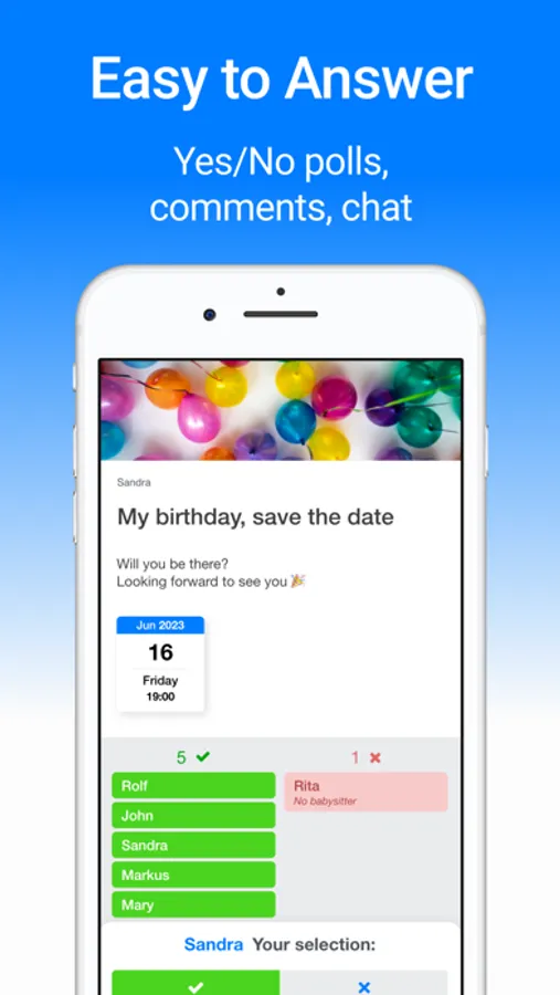 - to know which of your friends will come to the planned Event (Party, Meeting etc.)