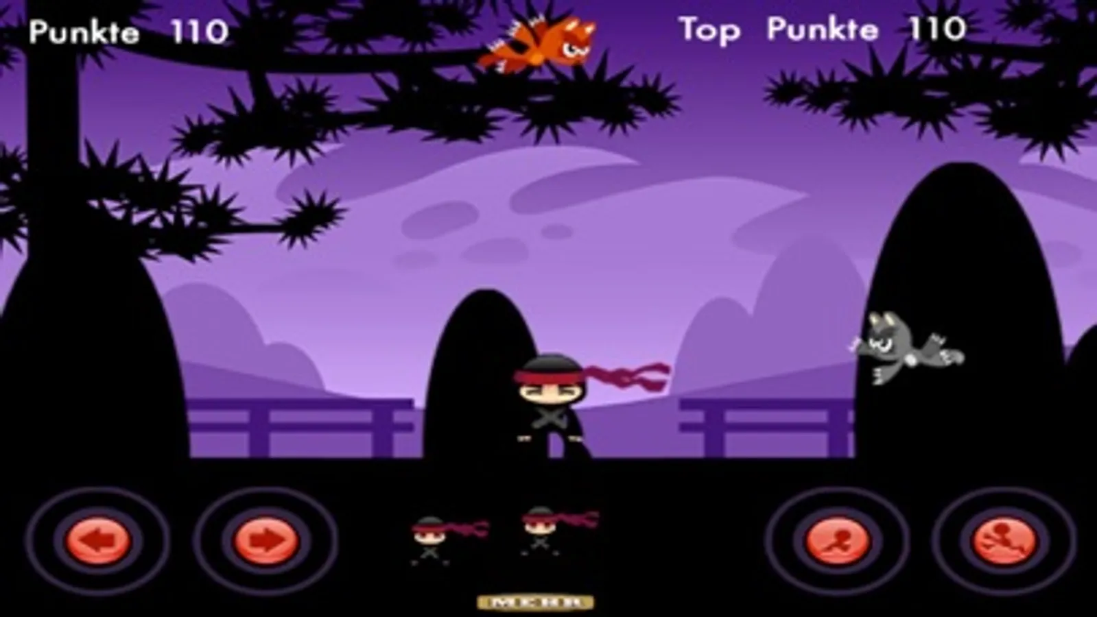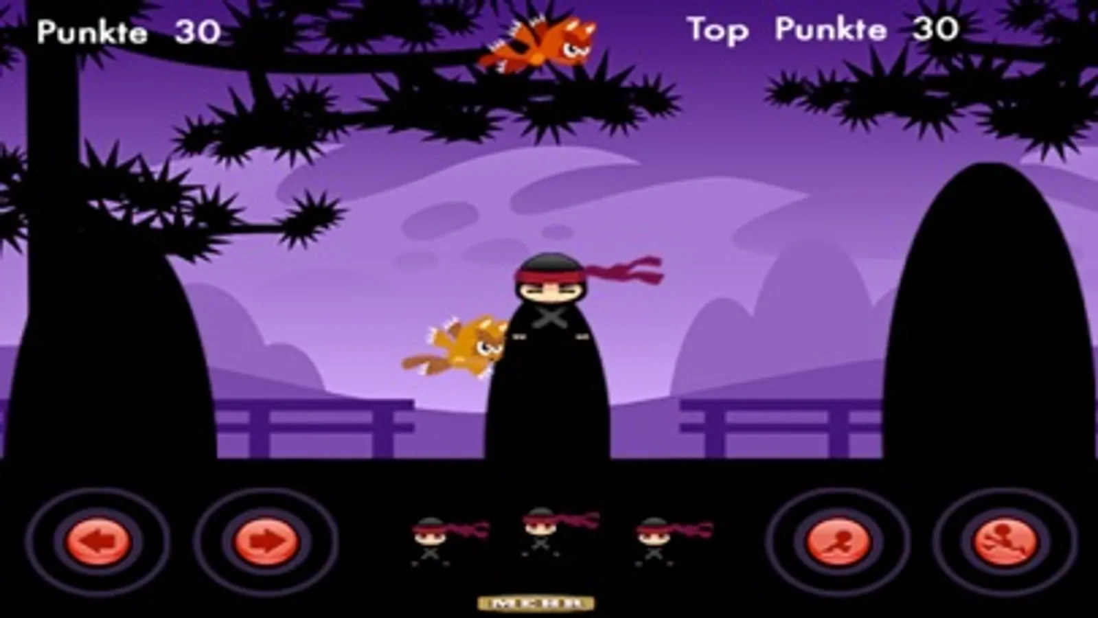 Du bist der Ninja und must den Attacken der wütenden Katzen begegnen. Du steuerst Deinen Ninja nach links und rechts und kannst springen und kriechen. Wenn es ganz gefährlich wird rettet Dich der Doppelsprung.