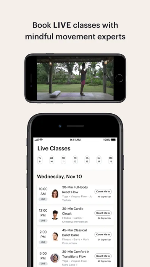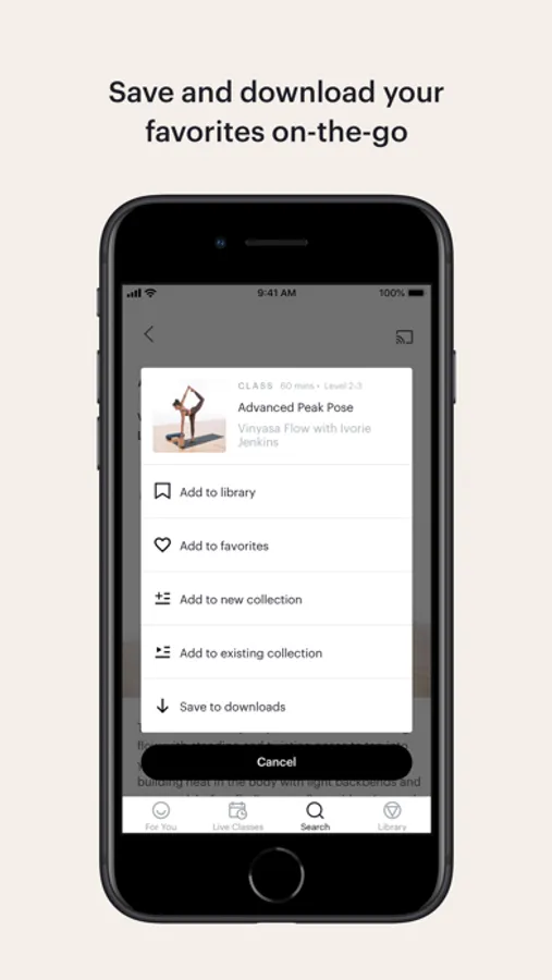 Download your favorite classes so you can practice offline. From your hotel room to the great outdoors—enjoy the freedom to practice anywhere.