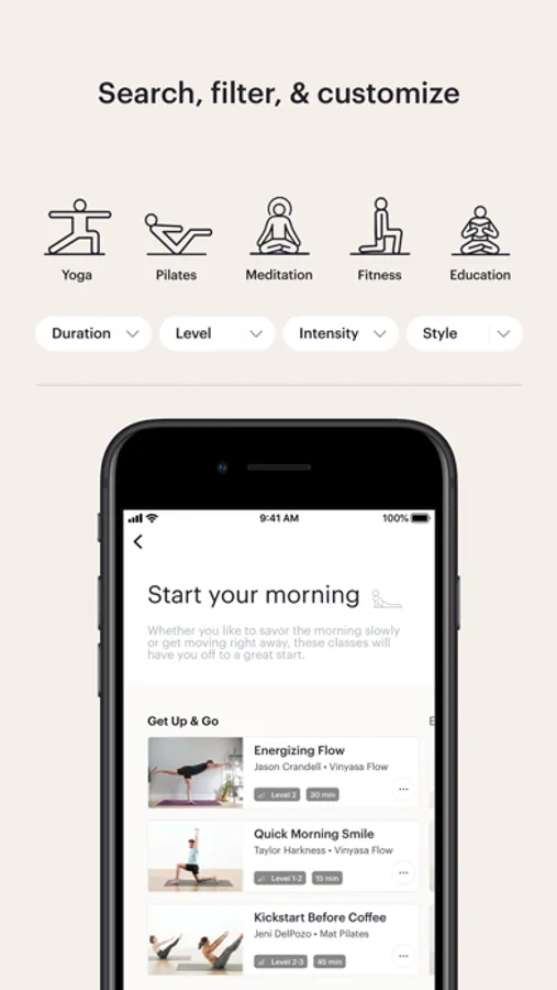 Easily find classes you need with the in-app search feature. You can narrow your results by style, duration, teacher, level, body part, and more.