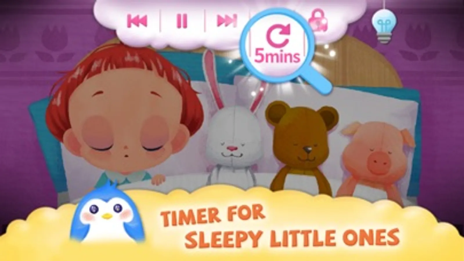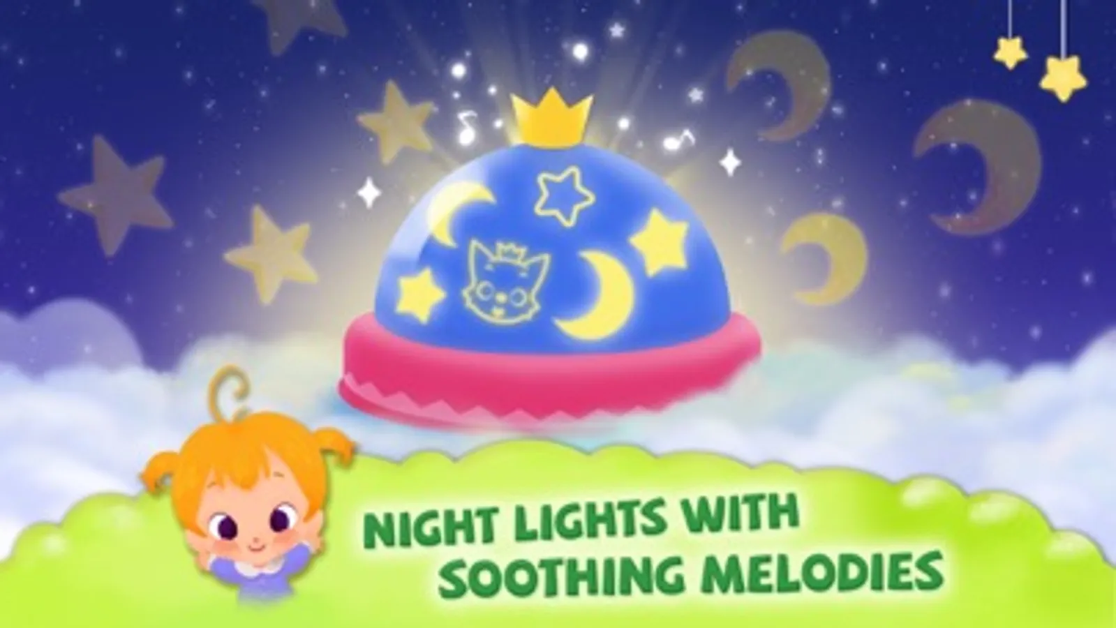 It's time for bed! Get a good night's sleep with soft lullaby music for babies and relaxing games.