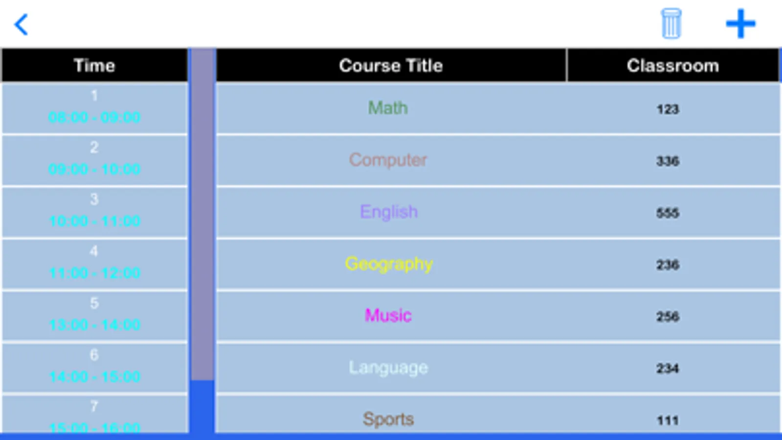 - Courses can be customized name and classroom.