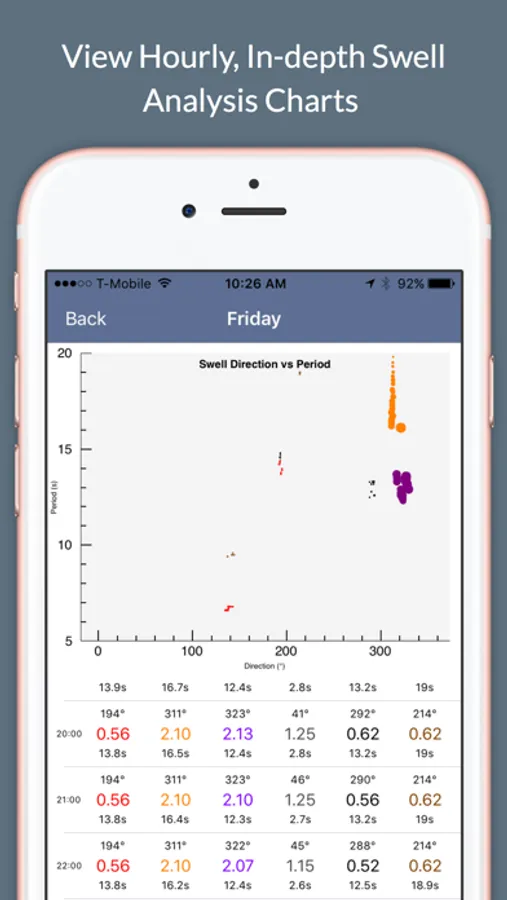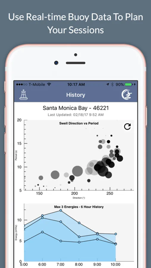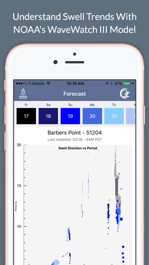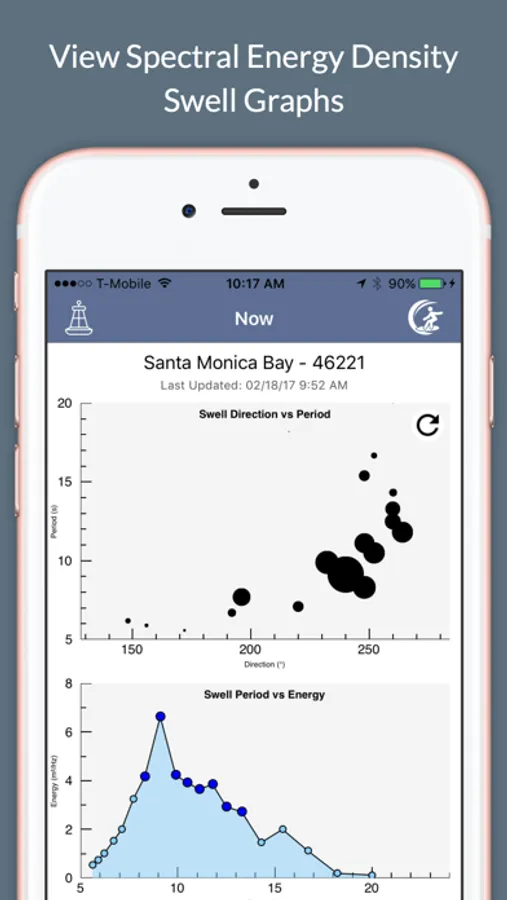 Graphically view forecasted buoy data, giving you a better idea of how the swell is changing with time.
