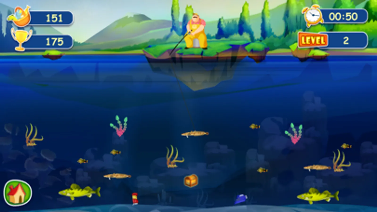 Tap on the screen to throw the hook. Avoid catching weeds or getting the line snagged.