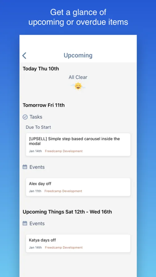 - View Project tasks or all tasks assigned to you - upcoming and overdue