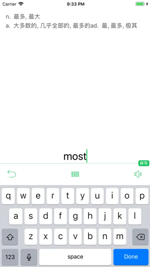 词播放记忆的基础上更测试你的拼写能力。这样做到更好的记忆。