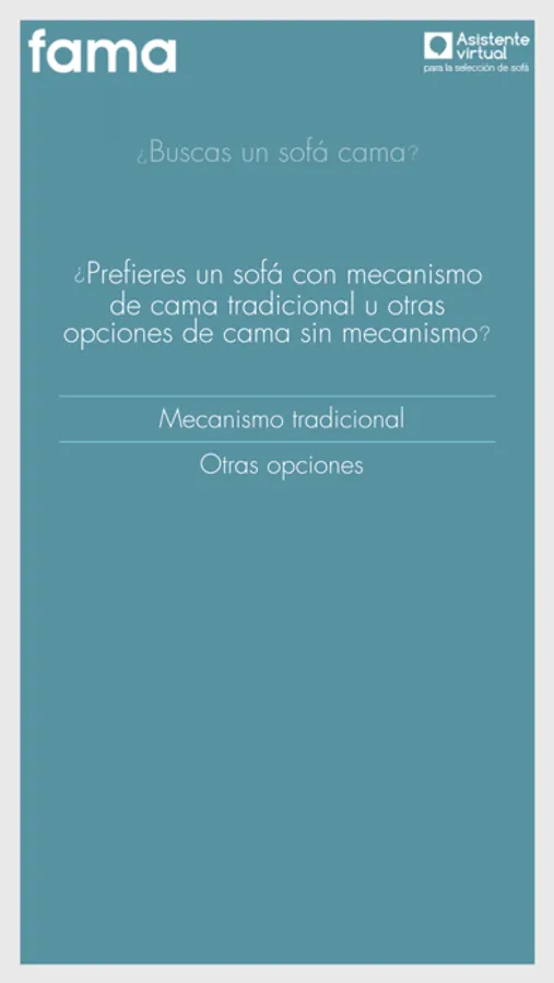 With some simple questions, the Fama Virtual Assistant will find the sofa of your dreams.