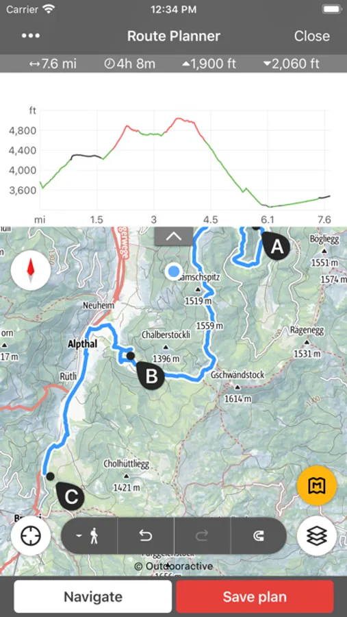In addition to the popular Swisstopo map, other basic maps such as the Outdooractive map can be used. This map can be stored locally on the device for offline use with just a few clicks. This is essential in areas with weak network coverage and with limited data volume.