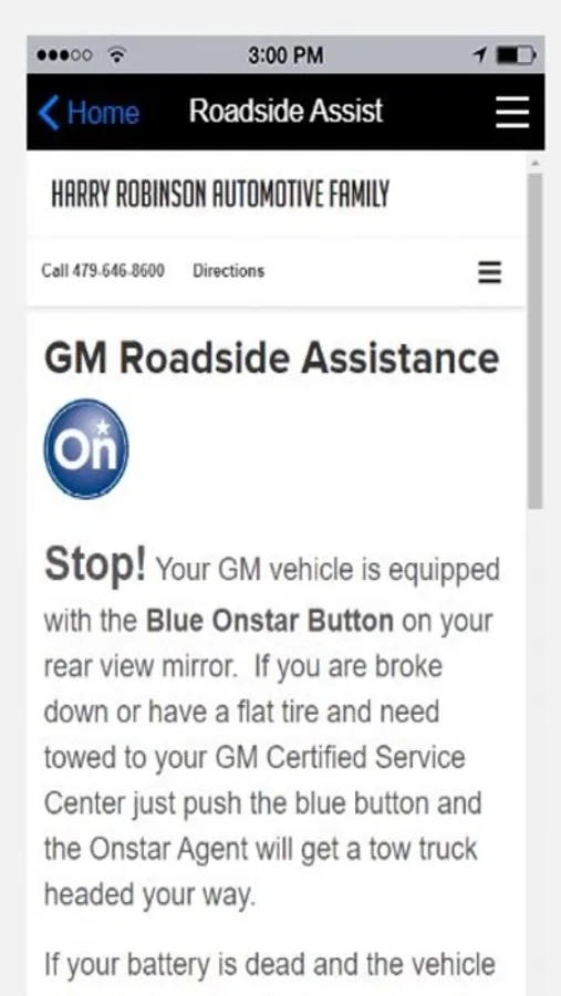 You can also get quick information on this APP like how to use GM's Roadside Assistance, maps and hours, how your warranty works, our Facebook page for leaving online reviews, how to contact us and more!