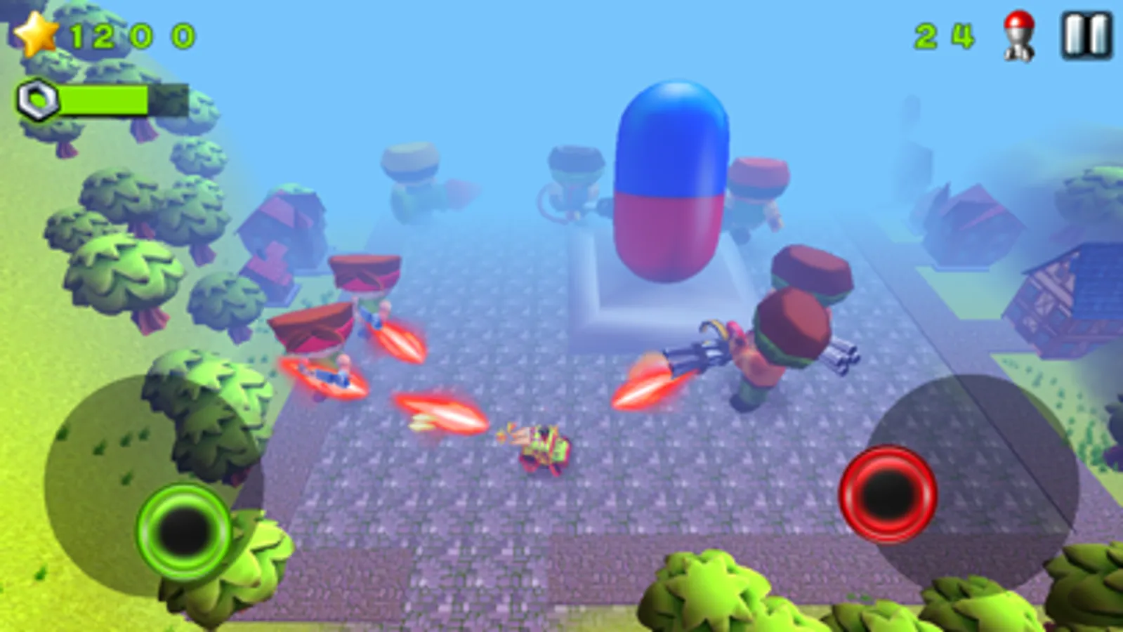 Toon War is a twin stick shooter game with colorful and vivid graphics. Your mission is to liberate peaceful villages from evil forces, eliminate enemies and win over dangerous bosses