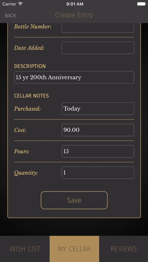 Quickly search your existing entries or our ever growing online database of over 4,000 spirits to quickly add to your Wishlist, Cellar, or Review.