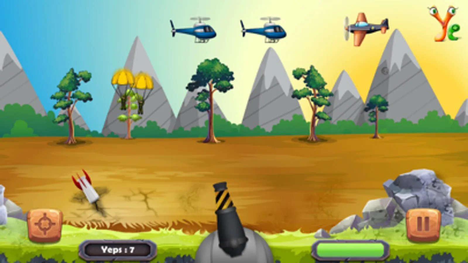 Its time for war and you are behind the enemy lines. Control the cannon to destroy the shooting helicopters, paratroopers, jets, and bombs. It is a graphical remake of our beloved the old pixelated para troops. Touch screen to control the cannon and shot the target to score points. Cannon can shoot multiple shots at once. One missile will destroy one target, use the missile to hit the parajumpers. This will destroy their parachute and they will fall to die.
