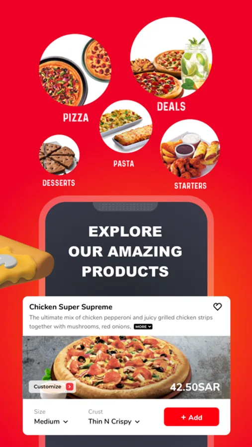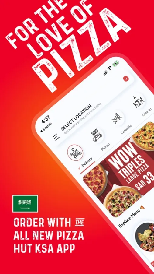 Pizza Hut KSA has made online pizza ordering now more exciting & convenient. Pizza Hut delivery app enables you to explore the Pizza Hut KSA menu, order pizza online, and get it delivered to your doorstep. You're in Cairo, Alexandria, Hurghada, Sharm El Shiekh, or any other city in KSA, just download the new Pizza Hut fast food delivery app to enjoy delicious pizza at home.
