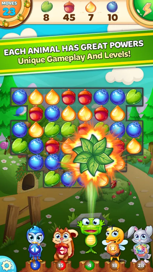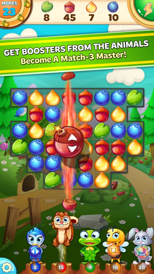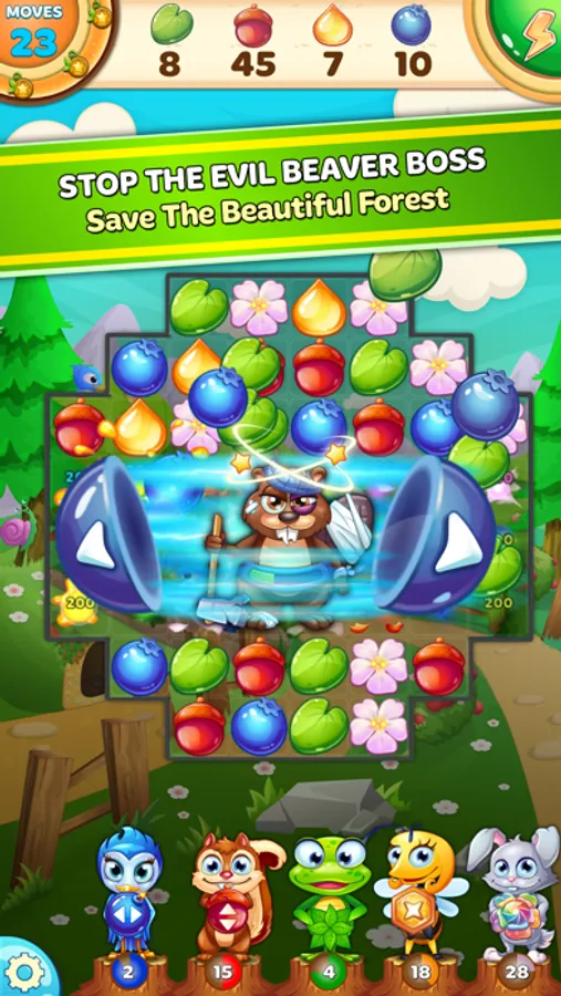 Go and crush the Evil Beavers and save paradise for the Forest animals that are gummy soft and candy sweet. Make a splash and show those Beavers that the Forest is not for the taking. Match 3 puzzle game play at its best!