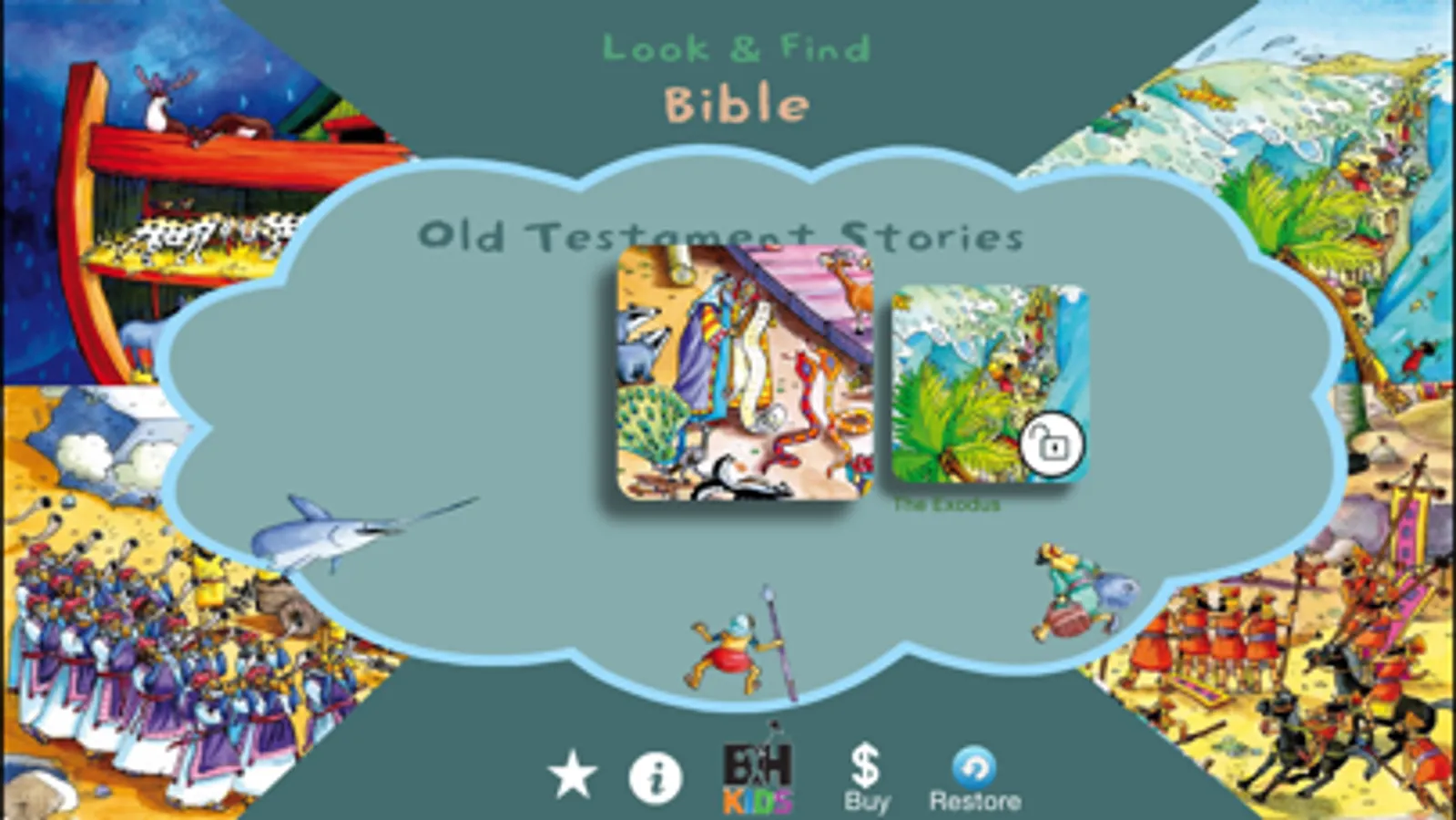 ook, find, and learn with search-and-find illustrations from five adventure-filled Old Testament stories. While searching for hidden items, kids can explore Noah's amazing ark, the Israelites escaping across the sea, the walls of Jericho, David's battle with Goliath, and Jonah being swallowed by a big fish. Enjoy hours of look-and-find fun—and the first scene is free!