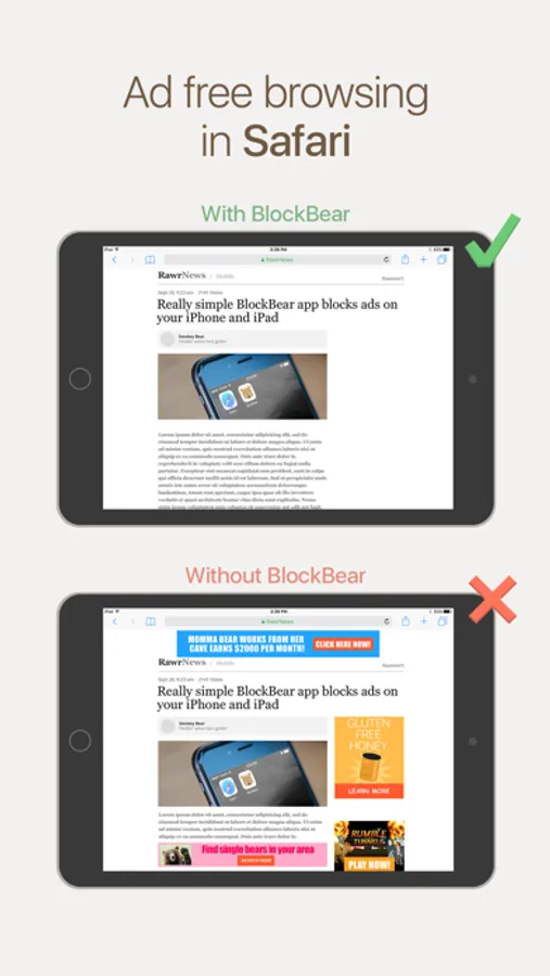 Rawr! BlockBear is a really simple and ferocious adblocking app that allows you to browse the web ad-free and reclaim valuable screen space.