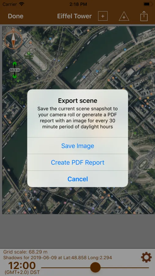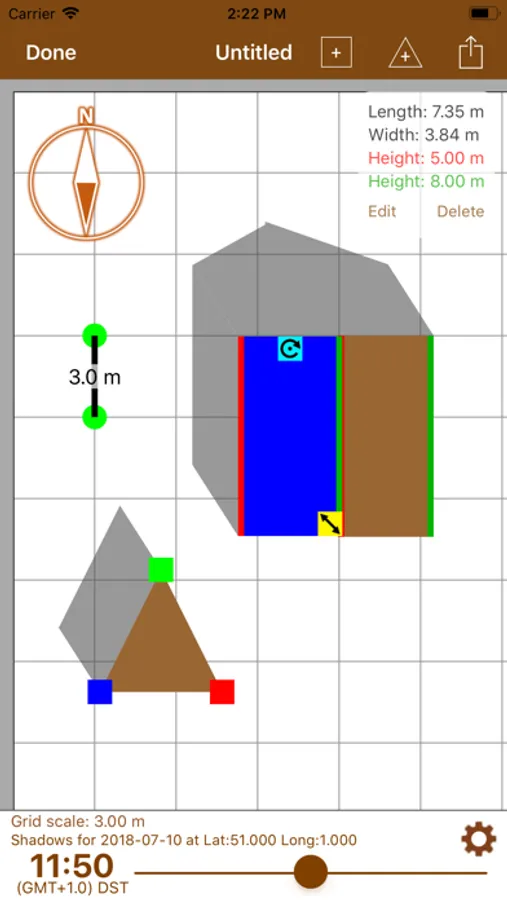Plot the shadows cast for your own custom scene, simply drawn right in the app! Generate reports and scene snapshots to print and share.