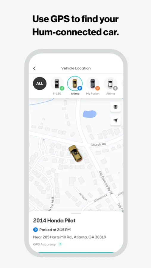 Use GPS to find any of your Hum-equipped cars when you need to.