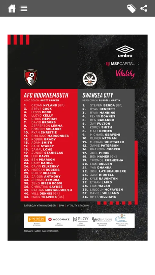 Whether you are able to get to the Vitality Stadium or not you can download the latest MATCHDAY programme and read all the latest news, interviews and reports from previous matches.