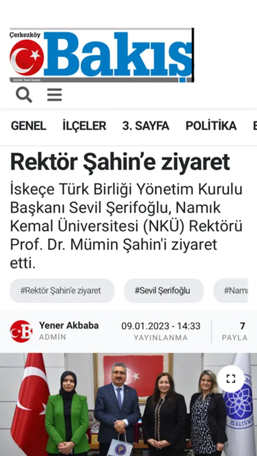 Çerkezköy Bakış uygulaması ile Çerkezköy ile ilgili haberleri takip edebilirsiniz.