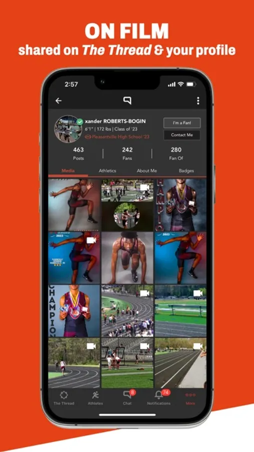 Sports Thread is the first event-support software designed with parents in mind, allowing you to focus on your athlete and their game. Capture their top plays and post them to your profile to share with family and friends.